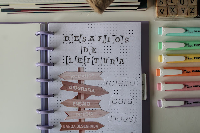 Para manter a jornada livrólica atualizada - e em plena sintonia com a abordagem de sempre -, defini quais os desafios que quero acompanhar e que marcadores fariam parte do caderno, para tornar a viagem inesquecível.