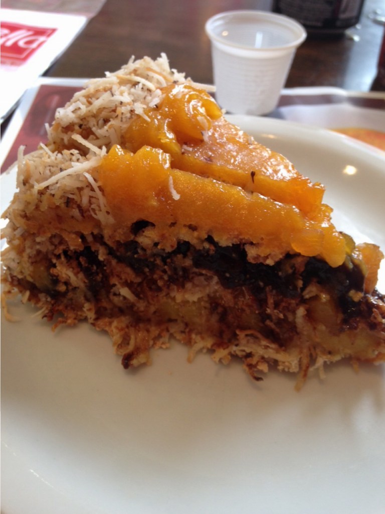 Não é o doce mais bonito do mundo: não sei se já vi duas tortas macron iguais, depende muito das noções estéticas do cozinheiro. A combinação do amarelo dos ovos com o branco do coco queimado e a escuridão das ameixas não é algo bonito de se apreciar. Da mesma forma, também não é a torta mais gostosa que existe, pois seu sabor é, ao mesmo tempo e de forma desigual, doce e amargo.