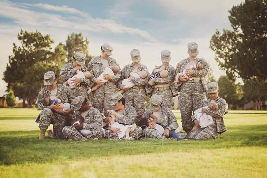 Esta já tinha publicado aqui: Militares americanas amamentam os seus bebés para a fotografia em jeito de celebração por ter sido criada uma sala para assistência a bebés no quartel de Fort Blisso no Texas. A foto e as partilhas foram logo apagadas no dia seguinte a ter sido publicada