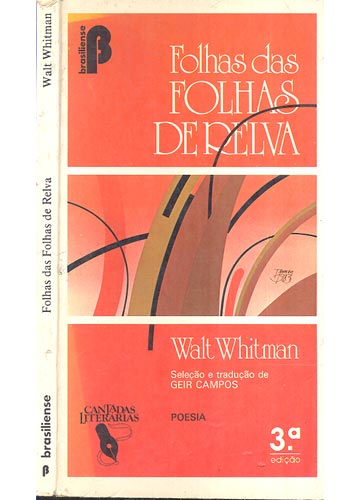 Como tantos em minha geração, tomei contato com Whitman em língua portuguesa através da seleção/ feita por Geir Campos e publicada pela Brasiliense (à época no auge da popularidade), em 1983: Folhas das Folhas de Relva. Na verdade, esse volume é uma versão refundida de uma edição lançada pela Civilização Brasileira em 1964, e difere dela pela disposição diferente dada aos versos whitmanianos, que foram “quebrados”, perderam aquele aspecto oceânico, até porque a edição é mais de bolso do que outra coisa, e o verso curto é que mais combina com ela.