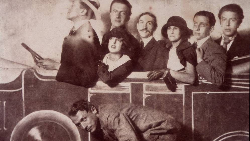 Expoentes do surrealismo: Max Morise, Simone Breton, Paul Eluard, Joseph Delteil, Gala Eluard, Robert Desnos, André Breton e Marx Ernst.