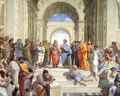 Platão e Aristóteles retratados por Rafael Sanzio na “Escola de Atenas”