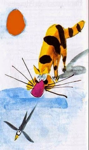 Quando, ao cair da noite, voltava para a sua cama - um velho trapo de veludo - olhou uma flor e nela viu refletidos os rasgados olhos da Andorinha. Febril, foi ao lago beber água e na água também enxergou a Andorinha que sorria. E a reconheceu em cada folha, em cada gota de orvalho, em cada réstia de sol crepuscular, em cada sombra da noite que chegava. Depois a descobriu vestida de prata na lua cheia para a qual miou um miado dolorido. Ia alta a noite quando conseguiu dormir. Sonhou com a Andorinha, era a primeira vez que ele sonhava havia muitos anos.