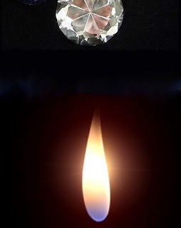 Quando vemos uma chama, sabemos que aquilo é simplesmente uma área do espaço preenchida por um campo de minúsculas explosões, ou combustão de gases. Sabedores disto, nossa visão do cristal se modifica, pois admitimos que ele, também, é uma área do espaço preenchida por um turbilhão de átomos.