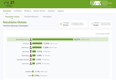 Com 99,75% do escrutínio fechado, Marcelo venceu as eleições por 60,81% dos votos expressos.