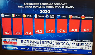 Estamos a dar um grande trambolhão mas, se as projecções da UE para 2020 estiverem certas, só a Alemanha dará um tombo menor.